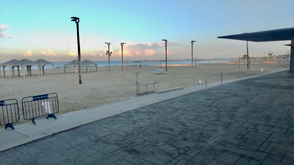 “… I stepped on my heels and after a few random lefts and rights came upon the blue Mediterranean. Relieved to be away from the hubbub of Ben Yehuda Street, I crossed a promenade onto a long stretch of deserted beach. The wind had picked up and waves were beating against the shoreline so, kicking off my sneakers I strolled along barefoot in the cool sand until I stumbled upon the town of Jaffa.”