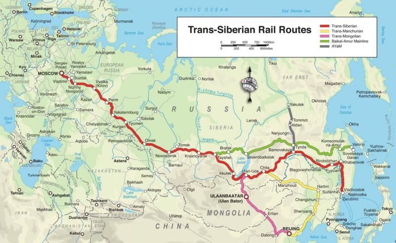 Route of Trans-Siberian and the Trans-Mongolian Express trains.