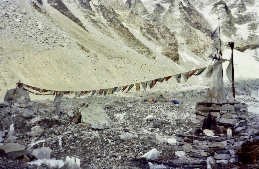 After two nights at Gorek Shep I was invited out to Mt. Everest Basecamp by the leader of the Polish expedition. I spent several very cold nights out there helping them set camp for other members of their team who would be joining them in a few days.https://en.wikipedia.org/wiki/Gorakshep