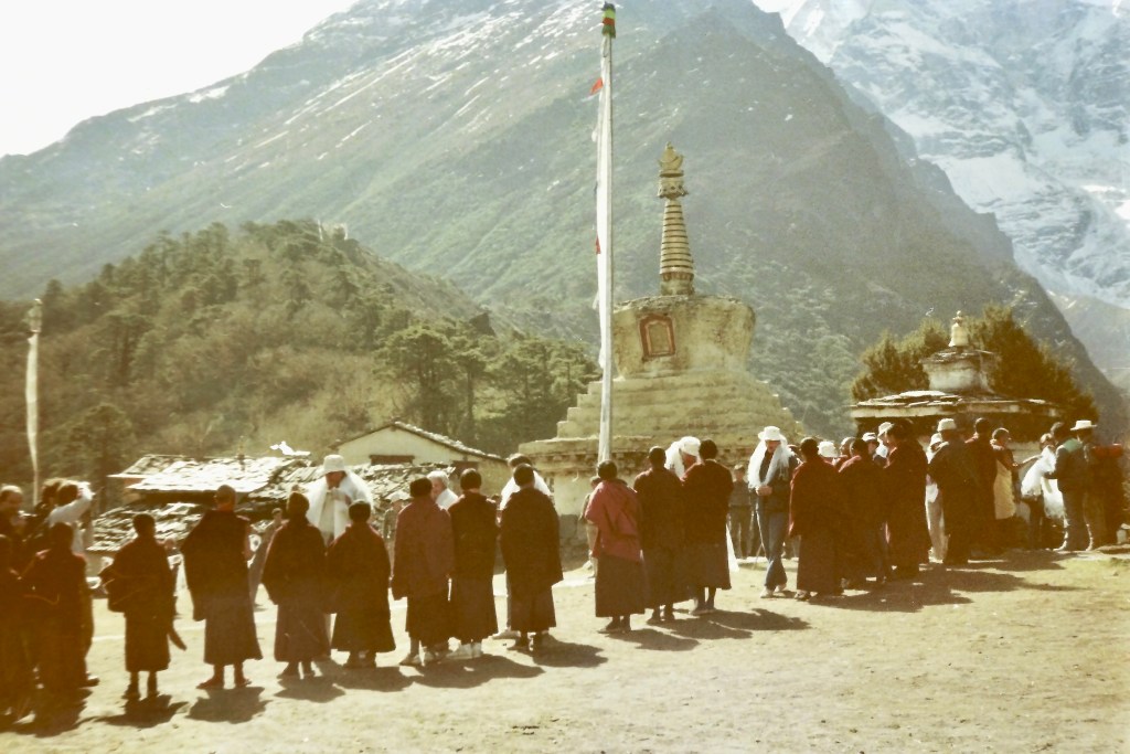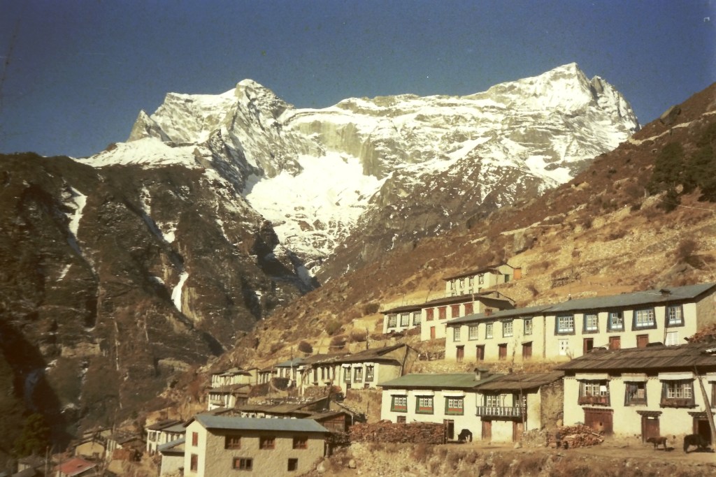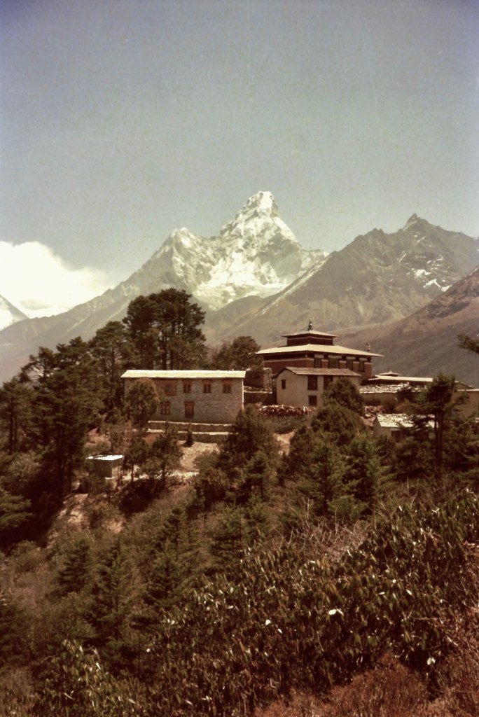 On my way down from the Khumbu Valley I stopped at Tengboche. Reluctant to leave the mountains behind I stayed on for a few nights and caught up on my journal. After almost 40 years I still dream about this place … https://en.wikipedia.org/wiki/TengbocheOn the morning of my departure there was a reception for Sir Edmund Hillary. Who, together with Tenzing Norgay, were the first team to ascend the summit of Mt. Everest in 1953. Sir Hillary was there to commemorate the opening of a new school which he had sponsored. His surprise visit was a perfect way to put the finishing touch an exhilarating adventure. https://en.wikipedia.org/wiki/Edmund_Hillaryhttps://en.wikipedia.org/wiki/Tenzing_Norgay