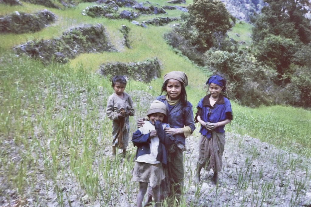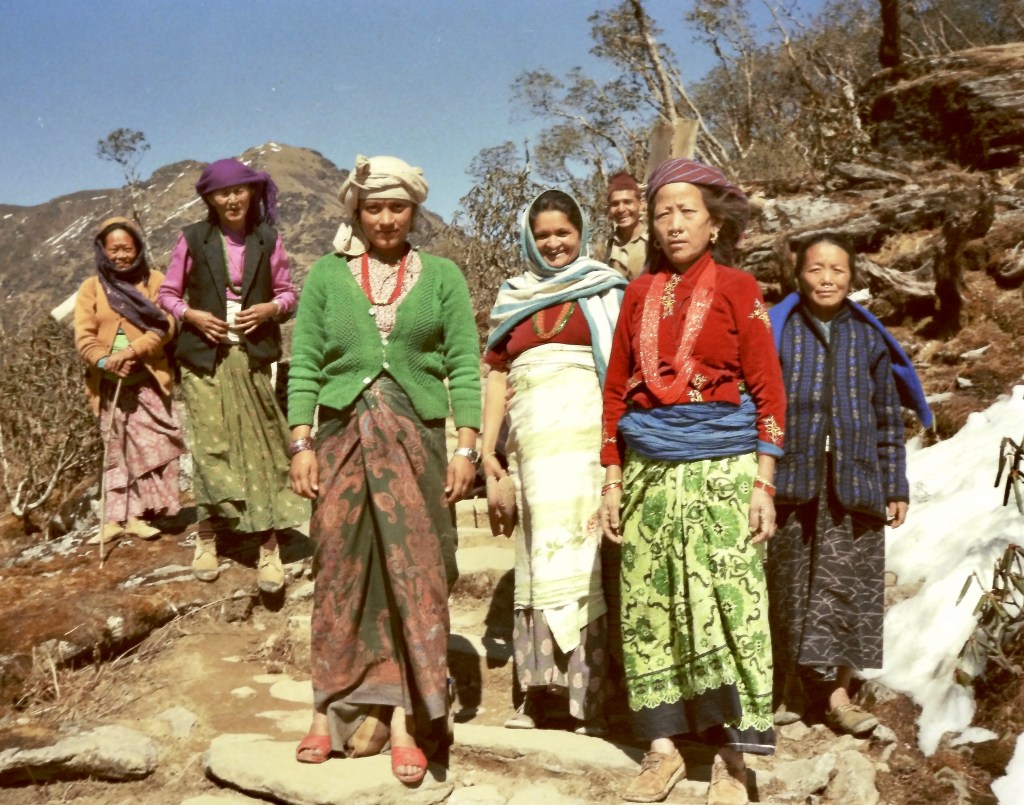 Sherpa women on the trail https://en.wikipedia.org/wiki/Sherpa_peopleThrough the Solu foothills toward the Khumbu Range. “The ups and downs over the grueling passes during the past three weeks had been exceptionally demanding, especially on the account that I was schlepping all my gear.”Chapter 2Sherpa schoolFirst rice planting of springSherpa lodge on the trailApproaching the Khumbu Range“The only large town in the entire Solu Khumbu is Namche Bazar. After eight strenuous days on the trail, I made it. I rested up for a few days over Easter before I headed up into the snow where the 8,000 meter peaks reside.” Chapter 2 https://en.wikipedia.org/wiki/Namche_Bazaar